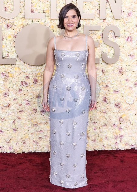 BEVERLY HILLS, LOS ANGELES, CALIFORNIA, USA - JANUARY 07: America Ferrera wearing Dolce and Gabbana with Harry Winston jewels arrives at the 81st Annual Golden Globe Awards held at The Beverly Hilton Hotel on January 7, 2024 in Beverly Hills, Los Angeles, California, United States., Credit:Xavier Collin / Avalon