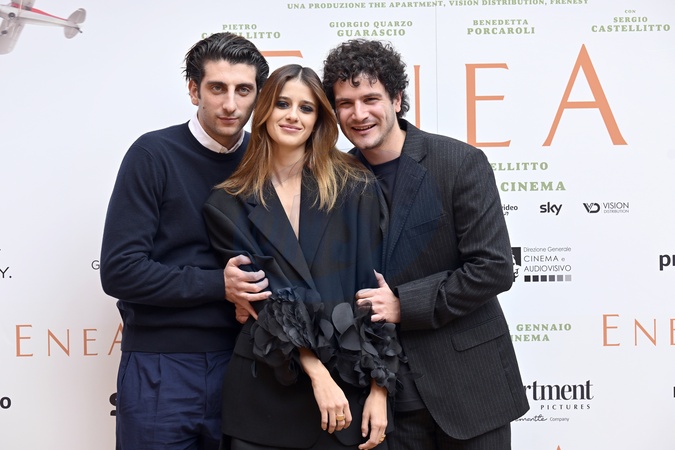 Pietro Castellitto, Benedetta Porcaroli, Giorgio Quarzo Guarascio attends 'Enea' film photocall, Rome, Italy 08 Jan 2024, Credit:Maria Laura Antonelli / Avalon
