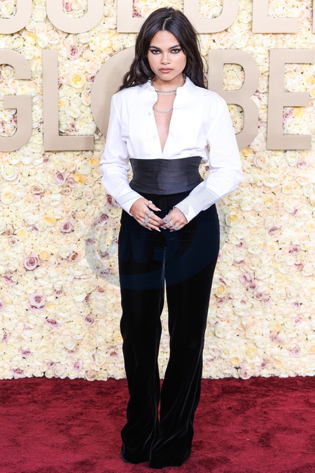 BEVERLY HILLS, LOS ANGELES, CALIFORNIA, USA - JANUARY 07: Ariana Greenblatt wearing Saint Laurent with Chopard jewelry arrives at the 81st Annual Golden Globe Awards held at The Beverly Hilton Hotel on January 7, 2024 in Beverly Hills, Los Angeles, California, United States., Credit:Xavier Collin / Avalon