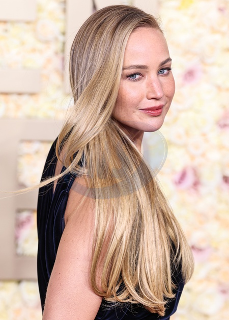 BEVERLY HILLS, LOS ANGELES, CALIFORNIA, USA - JANUARY 07: Jennifer Lawrence wearing a Dior Haute Couture dress and Aquazzura shoes arrives at the 81st Annual Golden Globe Awards held at The Beverly Hilton Hotel on January 7, 2024 in Beverly Hills, Los Angeles, California, United States., Credit:Xavier Collin / Avalon