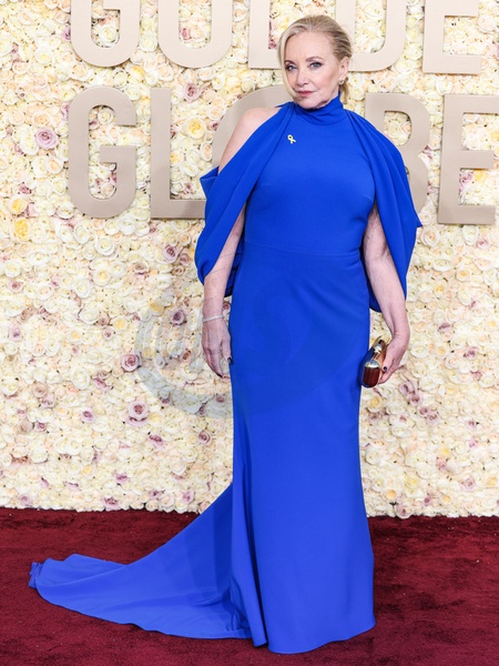 BEVERLY HILLS, LOS ANGELES, CALIFORNIA, USA - JANUARY 07: J. Smith-Cameron wearing Christian Siriano with jewelry by Karma El Khalil and Grown Brilliance arrives at the 81st Annual Golden Globe Awards held at The Beverly Hilton Hotel on January 7, 2024 in Beverly Hills, Los Angeles, California, United States., Credit:Xavier Collin / Avalon