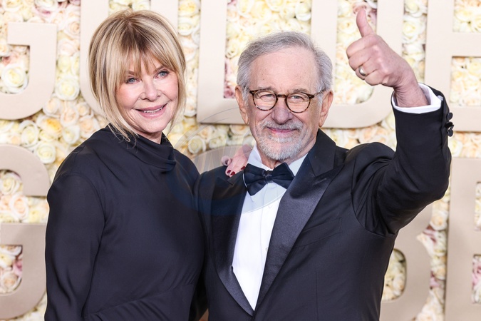 BEVERLY HILLS, LOS ANGELES, CALIFORNIA, USA - JANUARY 07: Kate Capshaw and husband Steven Spielberg arrive at the 81st Annual Golden Globe Awards held at The Beverly Hilton Hotel on January 7, 2024 in Beverly Hills, Los Angeles, California, United States., Credit:Xavier Collin / Avalon