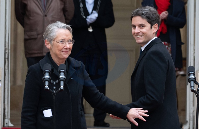 Przekazanie władzy pomiędzy byłą premier Elisabeth Borne a nowym premierem Gabrielem Attalem w Hôtel de Matignon w Paryżu.