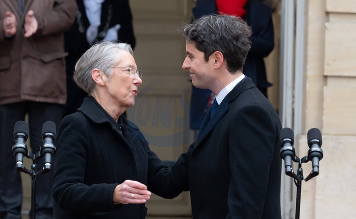 Przekazanie władzy pomiędzy byłą premier Elisabeth Borne a nowym premierem Gabrielem Attalem w Hôtel de Matignon w Paryżu.