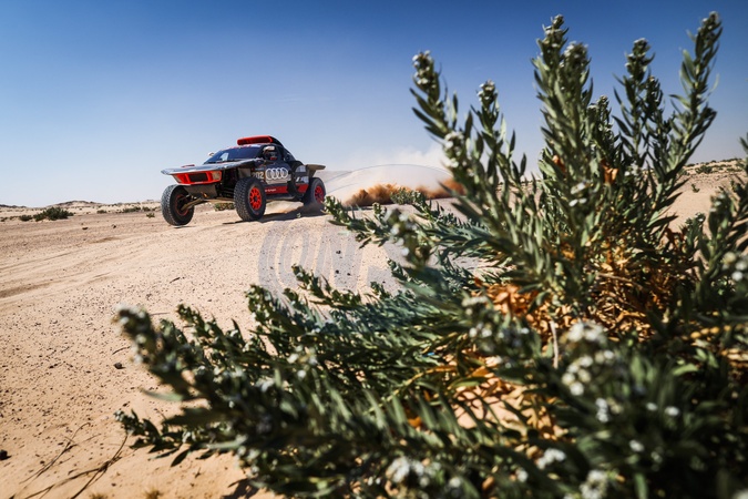 202 PETERHANSEL Stéphane (fra), BOULANGER Edouard (fra), Team Audi Sport, Audi RS Q E-Tron E2, FIA Ultimate, FIA W2RC, action during the Stage 4 of the Dakar 2024 on January 9, 2024 between Al Salamiya and Al-Hofuf, Saudi Arabia. © Frédéric Le Floc'h/DPPI/Panoramic/Bestimage