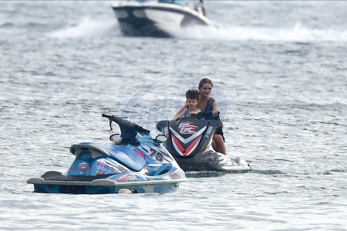 Exclusif - Prix spécial - No Web - Rosie Huntington-Whiteley fait un tour à jet-ski avec son fils Jack lors de leurs vacances à Phuket