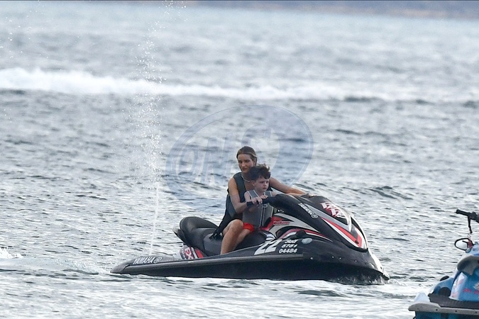 Exclusif - Prix spécial - No Web - Rosie Huntington-Whiteley fait un tour à jet-ski avec son fils Jack lors de leurs vacances à Phuket