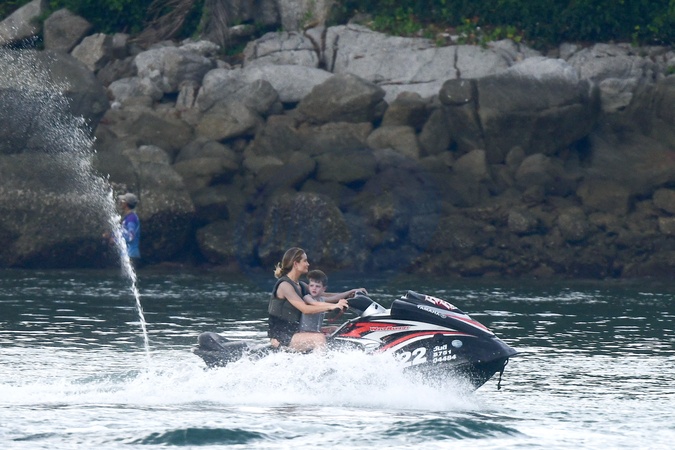 Exclusif - Prix spécial - No Web - Rosie Huntington-Whiteley fait un tour à jet-ski avec son fils Jack lors de leurs vacances à Phuket