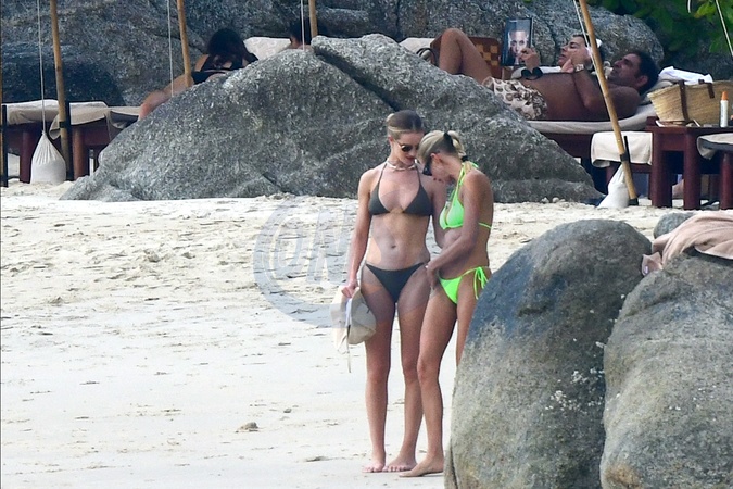 Exclusif - Prix spécial - No Web - Rosie Huntington-Whiteley fait un tour à jet-ski avec son fils Jack lors de leurs vacances à Phuket le 28 décembre 2023. Exclusive - No web For Germany call for price Rosie Huntington-Whiteley takes a jet-ski ride with her son Jack during their holiday in Phuket on 28 December 2023. — Please pixelate children face prior to publication —