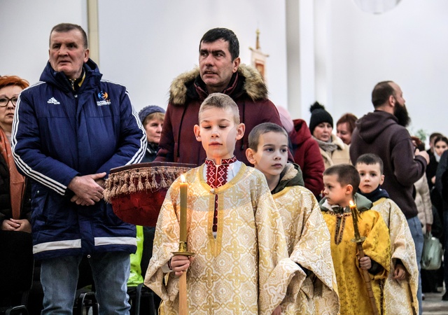 KYIV, UKRAINE - JANUARY 6, 2024 - Altar boys are pictured during the divine liturgy at the Cathedral of the Resurrection of Christ of the Ukrainian Greek Catholic Church (UGCC) on Epiphany, Kyiv, capital of Ukraine., Credit:Eugen Kotenko / Avalon