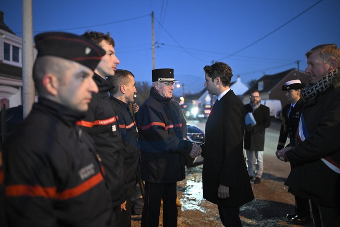 Le nouveau Premier ministre Gabriel Attal lors de son première déplacement dans le village de Clairmarais, pas de Calais, le 9 janvier 2024, village touché par les inondations. © Eliot Blondet/Pool/Bestimage New elected French Prime Minister Gabriel Attal during his first visit like Prime Minister in the village Clairmarais, Pas de Calais, on January 9, 2024, a village afected by floodings.