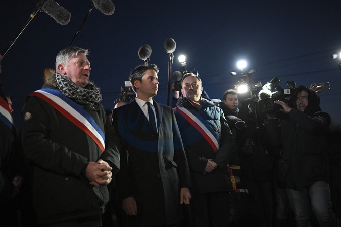 Le nouveau Premier ministre Gabriel Attal lors de son première déplacement dans le village de Clairmarais, pas de Calais, le 9 janvier 2024, village touché par les inondations. © Eliot Blondet/Pool/Bestimage New elected French Prime Minister Gabriel Attal during his first visit like Prime Minister in the village Clairmarais, Pas de Calais, on January 9, 2024, a village afected by floodings.
