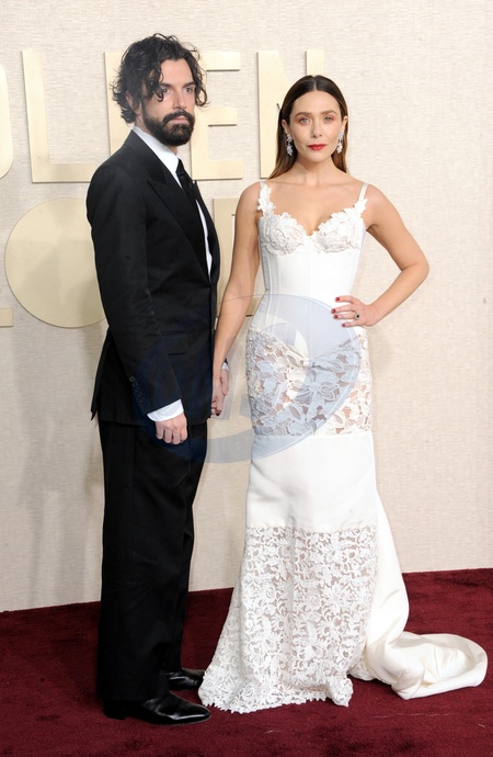 Robbie Arnett and Elizabeth Olsen at the 81st Annual Golden Globe Awards held at the Beverly Hilton Hotel in Beverly Hills, USA on January 7, 2024., Credit:Lumeimages.com / Avalon