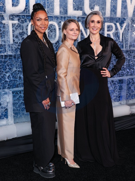 HOLLYWOOD, LOS ANGELES, CALIFORNIA, USA - JANUARY 09: Kali Reis, Jodie Foster and Issa Lopez arrive at the Los Angeles Premiere Of HBO's 'True Detective: Night Country' Season 4 held at the Paramount Theatre at Paramount Pictures Studios on January 9, 2024 in Hollywood, Los Angeles, California, United States., Credit:Xavier Collin / Avalon