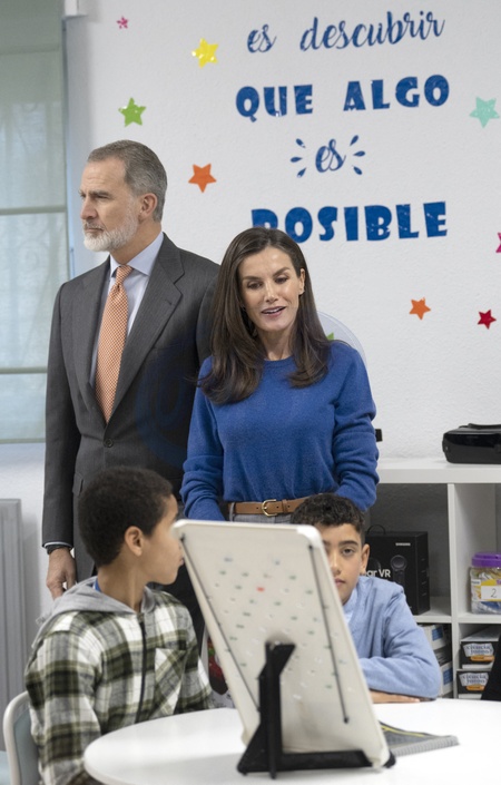 Le roi Felipe VI et la reine Letizia d'Espagne en visite dans l'école primaire "Gumersindo Azcarate" à Léon en Espagne. Le 10 janvier 2024 King Felipe VI and Queen Letizia visit 'Gumersindo Azcarate' Primary School winner of the 'Princess of Girona School of the Year 2022 Award' . Leon - January 10, 2024