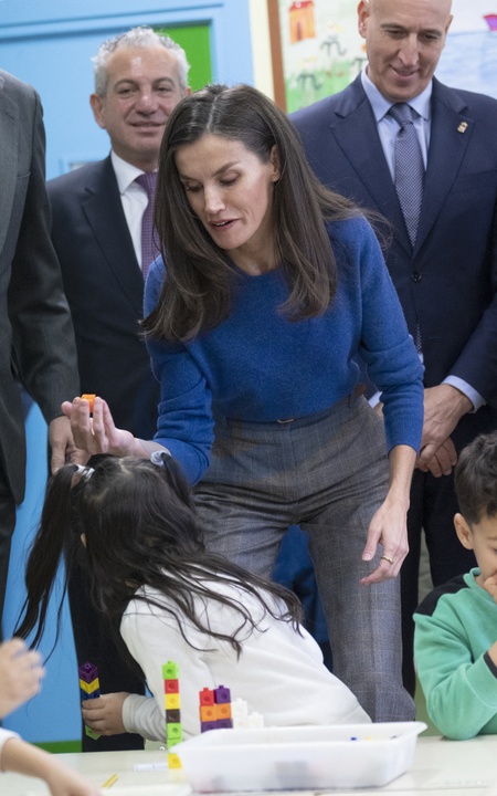 Le roi Felipe VI et la reine Letizia d'Espagne en visite dans l'école primaire "Gumersindo Azcarate" à Léon en Espagne
