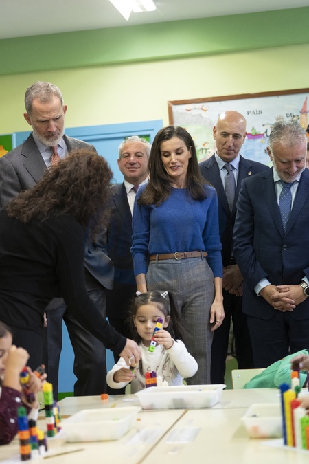 Le roi Felipe VI et la reine Letizia d'Espagne en visite dans l'école primaire "Gumersindo Azcarate" à Léon en Espagne