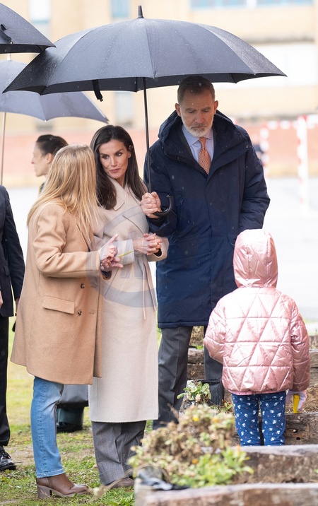 Król Felipe VI i królowa Hiszpanii Letizia z wizytą w szkole podstawowej „Gumersindo Azcarate” w Léon w Hiszpanii