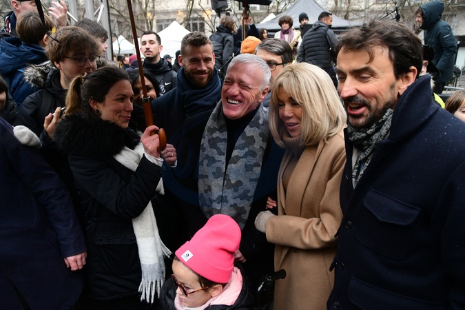 Brigitte Macron i Didier Deschamps podczas rozpoczęcia akcji Yellow Pieces na rzecz hospitalizowanych dzieci i młodzieży w Lyonie
