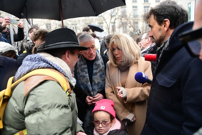 Brigitte Macron i Didier Deschamps podczas rozpoczęcia akcji Yellow Pieces na rzecz hospitalizowanych dzieci i młodzieży w Lyonie