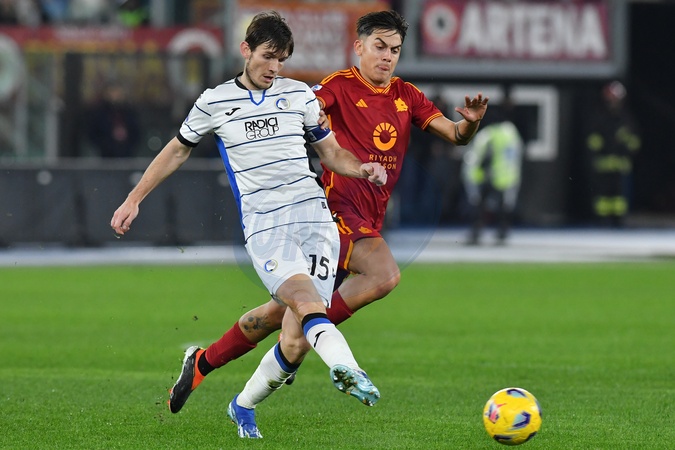 Marten de Roon of Atalanta,Paulo Dybala of AS Roma during the Serie A match between Roma v Atalanta at Olympic stadium, Italy, January 07th, 2024. AllShotLive, Credit:AllShotLive / Avalon