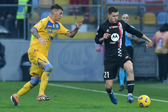Enzo Barrenechea of Frosinone,Valentin Carboni of Monza during the Serie A match between Frosinone v Monza at Benito Stirpe stadium in Frosinone, Italy, January 06th, 2024. AllShotLive, Credit:AllShotLive / Avalon