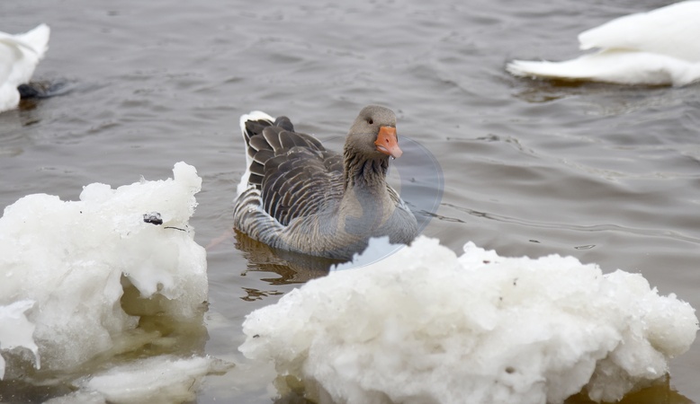 KYIV, UKRAINE - JANUARY 06, 2024 - A duck swims in the Dnipro River on Dnipro embankment, Kyiv, capital of Ukraine., Credit:Ruslan Kanuka / Avalon