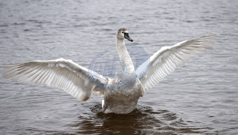 KYIV, UKRAINE - JANUARY 06, 2024 - A swan swims in the Dnipro River on Dnipro embankment, Kyiv, capital of Ukraine., Credit:Ruslan Kanuka / Avalon