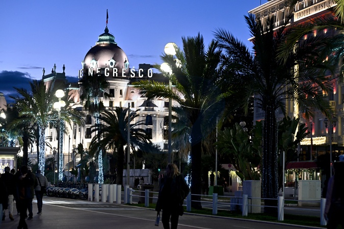 Illustration d'un coucher de soleil sur la Promenade des Anglais à Nice, le 6 janvier 2024. Ici, l'hôtel Negresco. © Bruno Bebert / Bestimage Illustration of a sunset on the Promenade des Anglais in Nice in January 2024.