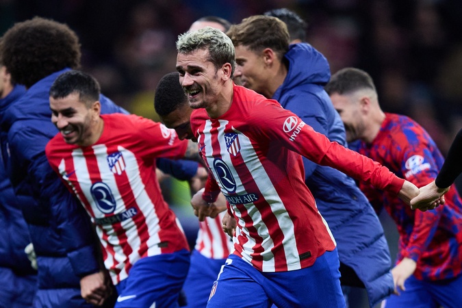 Info - Antoine Griezmann, nouveau meilleur buteur de tous les temps de l'Atlético de Madrid - Match de football LaLiga : L'Atletico Madrid l'emporte 3-1 face au Villareal le 12 novembre 2023. © Alvaro Medranda / Panoramic / Bestimage Antoine Griezmann of Atletico de Madrid celebrates with his teammates after winning during the LaLiga EA Sports match between Atletico de Madrid and Villarreal CF at Cívitas Metropolitano on November 12, 2023 in Madrid, Spain.