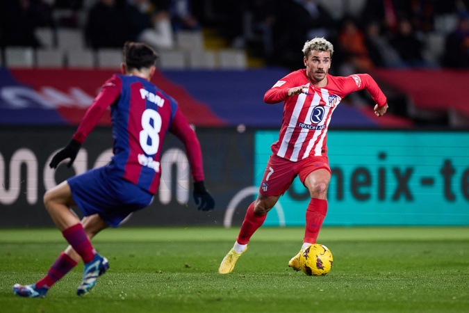Info - Antoine Griezmann, nouveau meilleur buteur de tous les temps de l'Atlético de Madrid - Match de football en Liga : Le FC Barcelone remporte le choc face à l'Atletico de Madrid et se replace sur le podium le 3 décembre 2023. © Alvaro Medranda / Panoramic / Bestimage Antoine Griezmann of Atletico de Madrid runs with the ball during the LaLiga EA Sports match between FC Barcelona and Atletico de Madrid at Estadi Olimpic Lluis Companys on December 3, 2023 in Barcelona, Spain. (Photo by Alvaro Medranda/Panoramic)