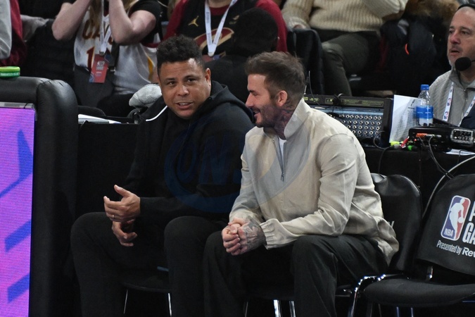 Célébrités assistent au match de basket de NBA entre les Cavs de Cleveland contre les Brooklyn Nets (111-102) à l'Accor Arena à Paris le 11 janvier 2024. David Beckham and Ronaldo Luís Nazário de Lima attend the NBA Paris Game 2024 between Brookly Nets vs Cleveland Cavaliers at Accor Arena on January 11, 2024 in Paris, France. ( Photo by federico pestellini / panoramic ) -