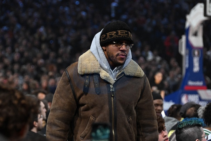 Célébrités assistent au match de basket de NBA entre les Cavs de Cleveland contre les Brooklyn Nets (111-102) à l'Accor Arena à Paris le 11 janvier 2024. Ciryl Gane attends the NBA Paris Game 2024 between Brookly Nets vs Cleveland Cavaliers at Accor Arena on January 11, 2024 in Paris, France. ( Photo by federico pestellini / panoramic ) -