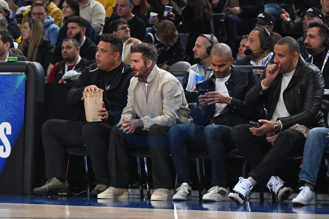 Célébrités assistent au match de basket de NBA entre les Cavs de Cleveland contre les Brooklyn Nets (111-102) à l'Accor Arena à Paris le 11 janvier 2024. Ronaldo Luís Nazário de Lima - David Beckham and Tony Parker attend the NBA Paris Game 2024 between Brookly Nets vs Cleveland Cavaliers at Accor Arena on January 11, 2024 in Paris, France. ( Photo by federico pestellini / panoramic ) -