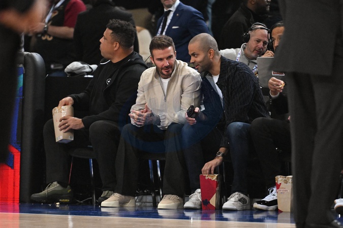 Célébrités assistent au match de basket de NBA entre les Cavs de Cleveland contre les Brooklyn Nets (111-102) à l'Accor Arena à Paris le 11 janvier 2024. Ronaldo Luís Nazário de Lima - David Beckham and Tony Parker attend the NBA Paris Game 2024 between Brookly Nets vs Cleveland Cavaliers at Accor Arena on January 11, 2024 in Paris, France. ( Photo by federico pestellini / panoramic ) -