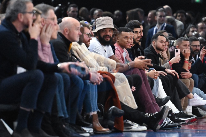 Célébrités assistent au match de basket de NBA entre les Cavs de Cleveland contre les Brooklyn Nets (111-102) à l'Accor Arena à Paris le 11 janvier 2024. Kylian Mbappe attends the NBA Paris Game 2024 between Brookly Nets vs Cleveland Cavaliers at Accor Arena on January 11, 2024 in Paris, France. ( Photo by federico pestellini / panoramic ) -