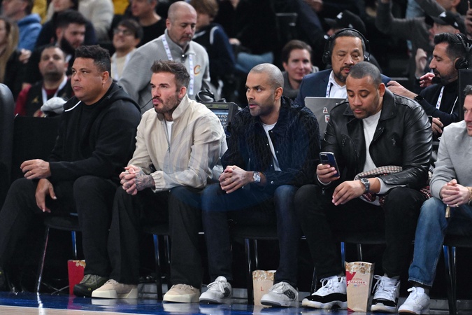 Célébrités assistent au match de basket de NBA entre les Cavs de Cleveland contre les Brooklyn Nets (111-102) à l'Accor Arena à Paris le 11 janvier 2024. Ronaldo Luís Nazário de Lima - David Beckham and Tony Parker attend the NBA Paris Game 2024 between Brookly Nets vs Cleveland Cavaliers at Accor Arena on January 11, 2024 in Paris, France. ( Photo by federico pestellini / panoramic ) -