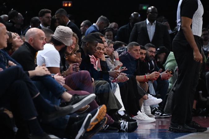 Célébrités assistent au match de basket de NBA entre les Cavs de Cleveland contre les Brooklyn Nets (111-102) à l'Accor Arena à Paris le 11 janvier 2024. Kylian Mbappe attends the NBA Paris Game 2024 between Brookly Nets vs Cleveland Cavaliers at Accor Arena on January 11, 2024 in Paris, France. ( Photo by federico pestellini / panoramic ) -