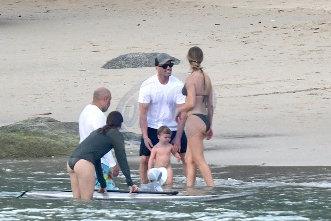 Exclusif - Prix spécial - No Web - Jason Statham et Rosie Huntington-Whiteley passent un moment en famille à la plage de l'hôtel Amanpuri à Phuket, Thaïlande le 28 décembre 2023. Ils profitent de ses moments précieux avec leurs enfant Jack et Isabella. Au programme : Balades, baignades et jeux. OBLIGATOIRE : FLOUTER LE VISAGE DES ENFANTS ET NUDITÉ AVANT PUBLICATION Exclusive - No web For Germany call for price Rosie Huntington-Whiteley takes a jet-ski ride with her son Jack during their holiday in Phuket on 28 December 2023. — Please pixelate children face and nudity prior to publication —