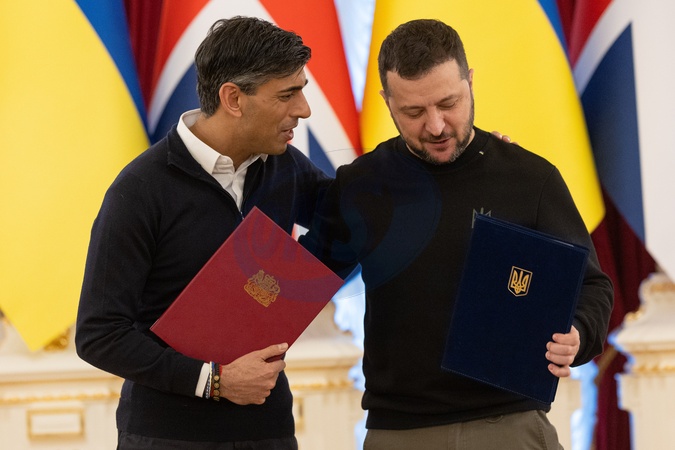 12/01/2024. , Ukraine. The Prime Minister Rishi Sunak meets the President of Ukraine Volodymyr Zelenskyy at the Mariyinsky Palace and signed a new defence agreement., Credit:Simon Walker / Avalon