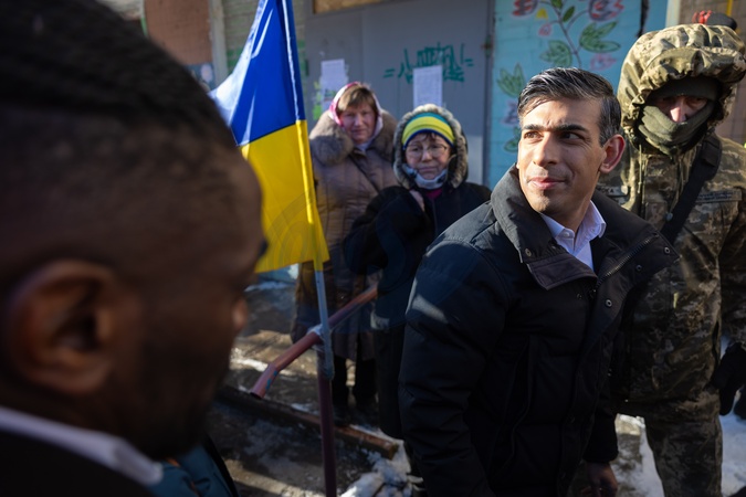 12/01/2024. , Ukraine. The Prime Minister Rishi Sunak visits a bomb damaged building in Ukraine and meets local residents and emergency workers., Credit:Simon Walker / Avalon