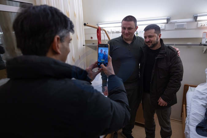 12/01/2024. Kyiv, Ukraine. The Prime Minister Rishi Sunak, together with the President of Ukraine Volodymyr Zelenskyy, visits wounded veterans in hospital., Credit:Simon Walker / Avalon