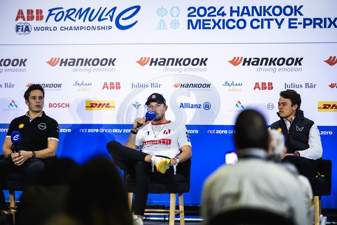 FENESTRAZ Sacha (fra), Nissan Formula E Team, Nissan e-4ORCE 04, DENNIS Jake (gbr), Andretti Global, Porsche 99X Electric, DE VRIES Nyck (nld), Mahindra Racing, Mahindra M9Electro, conference de presse, press conference portrait during the 2024 Hankook Mexico City ePrix, 1st meeting of the 2023-24 ABB FIA Formula E World Championship, on the Autodromo Hermanos Rodriguez from January 11 to 13, in Mexico City, Mexico -