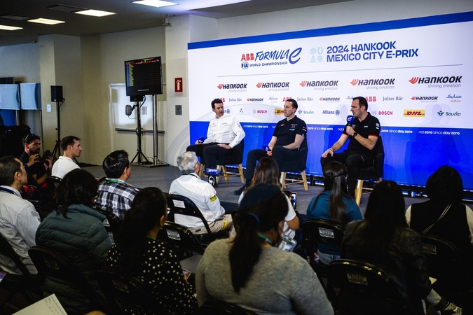 MAUDUIT Nicolas, DS Penske Formula E Team Deputy Team Principal, MODLINGER Florian, TAG Heuer Porsche Formula E Team Team Principal, BARCLAY James, Panasonic Jaguar Racing Team Director, conference de presse, press conference portrait during the 2024 Hankook Mexico City ePrix, 1st meeting of the 2023-24 ABB FIA Formula E World Championship, on the Autodromo Hermanos Rodriguez from January 11 to 13, in Mexico City, Mexico -