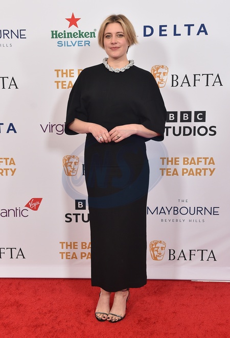 Greta Gerwig arriving at the 2024 BAFTA Tea Party held at Maybourne Beverly Hills on January 13, 2024 in Beverly Hills, Ca.© Lisa OConnor/AFF-USA.com