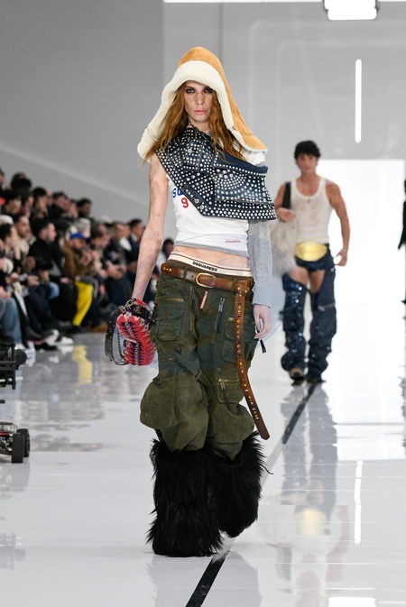 DSquared2 Model On Catwalk, Men, Milan Fashion Week 2024 Man Ready To Wear For Fall Winter, Defile, Fashion Show Runway Collection, Pret A Porter, Modelwear, Modeschau, Man, Laufsteg Hebet Winter Autumn Italycatwalk fashion outlook beauty runway menMILMFW24, Credit:www.fashionpps.com / Avalon