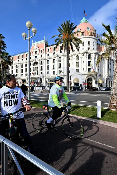 Rassemblement à Nice pour réclamer la libération des otages israéliens après l'attaque du 7 octobre du Hamas au 100ème jour de leur captivité. D'autres rassemblements sont prévus partout dans le monde. A vélo, ou à pied, plus de 300 personnes étaient rassemblés pour la même cause: réclamer la libération immédiate des otages. Le collectif du 7 octobre Côte d'Azur vient de se créer. C'est lui qui est à l'initiative de cette action, avec le soutien de la ville de Nice représentée par Martine Ouaknine, l'adjointe au maire de Nice, déléguée aux affaires juridiques, à l'aide aux victimes, au devoir de mémoire et à la lutte contre le racisme et l'antisémitisme. Les manifestants sont partis du quai Rauba Capeu, depuis la sculpture I Love Nice, ont descendu la Promenade des Anglais pour accomplir un aller retour avec un arrêt symbolique devant près de l'hôtel Negresco et le musée Masséna où se trouve le mémorial des victimes de l'attentat islamiste du 14 juillet 2016. © Bruno Bebert / Bestimage Rally in Nice to demand the release of Israeli hostages after the October 7 Hamas attack on the 100th day of their captivity. Other gatherings are planned around the world. By bike or on foot, more than 300 people gathered for the same cause: demanding the immediate release of the hostages. The October 7 Côte d'Azur collective has just been created. He is the one who initiated this action, with the support of the city of Nice represented by Martine Ouaknine, the deputy mayor of Nice, delegated to legal affairs, assistance to victims, the duty of memory and the fight against racism and anti-Semitism. The demonstrators left from the Rauba Capeu quay, from the I Love Nice sculpture, went down the Promenade des Anglais to complete a round trip with a symbolic stop in front of the Negresco hotel and the Masséna museum where the memorial to the victims is located. of the Islamist attack of July 14, 2016.