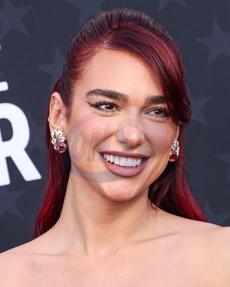 SANTA MONICA, LOS ANGELES, CALIFORNIA, USA - JANUARY 14: Dua Lipa wearing a custom Prada dress, Prada shoes and bag, and Tiffany and Co. jewelry arrives at the 29th Annual Critics' Choice Awards held at The Barker Hangar on January 14, 2024 in Santa Monica, Los Angeles, California, United States., Credit:Xavier Collin / Avalon