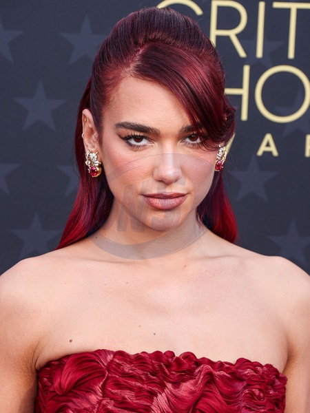 SANTA MONICA, LOS ANGELES, CALIFORNIA, USA - JANUARY 14: Dua Lipa wearing a custom Prada dress, Prada shoes and bag, and Tiffany and Co. jewelry arrives at the 29th Annual Critics' Choice Awards held at The Barker Hangar on January 14, 2024 in Santa Monica, Los Angeles, California, United States., Credit:Xavier Collin / Avalon