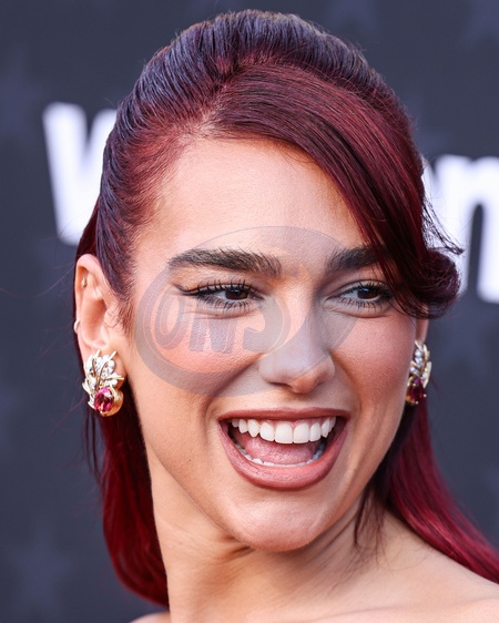 SANTA MONICA, LOS ANGELES, CALIFORNIA, USA - JANUARY 14: Dua Lipa wearing a custom Prada dress, Prada shoes and bag, and Tiffany and Co. jewelry arrives at the 29th Annual Critics' Choice Awards held at The Barker Hangar on January 14, 2024 in Santa Monica, Los Angeles, California, United States., Credit:Xavier Collin / Avalon